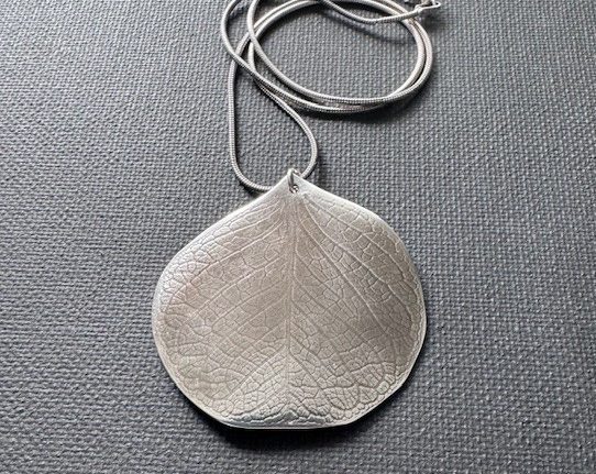 Sterling silver, leaf impression made with actual dried leaves! Oxidized with a polished edge to bring out the natural veining of the leaves. $110 - SOLD